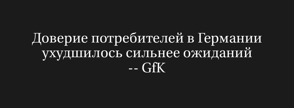27 августа (Рейтер) – Индекс потребительского доверия в Германии на сентябрь, рассчитанный исследовательским институтом GfK, составил минус 23,6 пункта, тогда как специалисты прогнозировали значение в минус 22,0.
