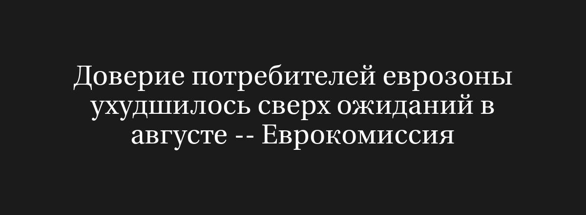Предварительная оценка от Еврокомиссии показывает, что индекс доверия потребителей в августе составил минус 15,5 пункта. При этом экономисты, опрошенные Reuters, прогнозировали значение на уровне минус 14,9 пункта.