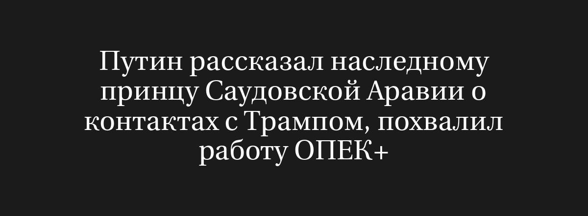 Путин обсудил результаты общения с Трампом и похвалил ОПЕК+ в разговоре с наследным принцем Саудовской Аравии